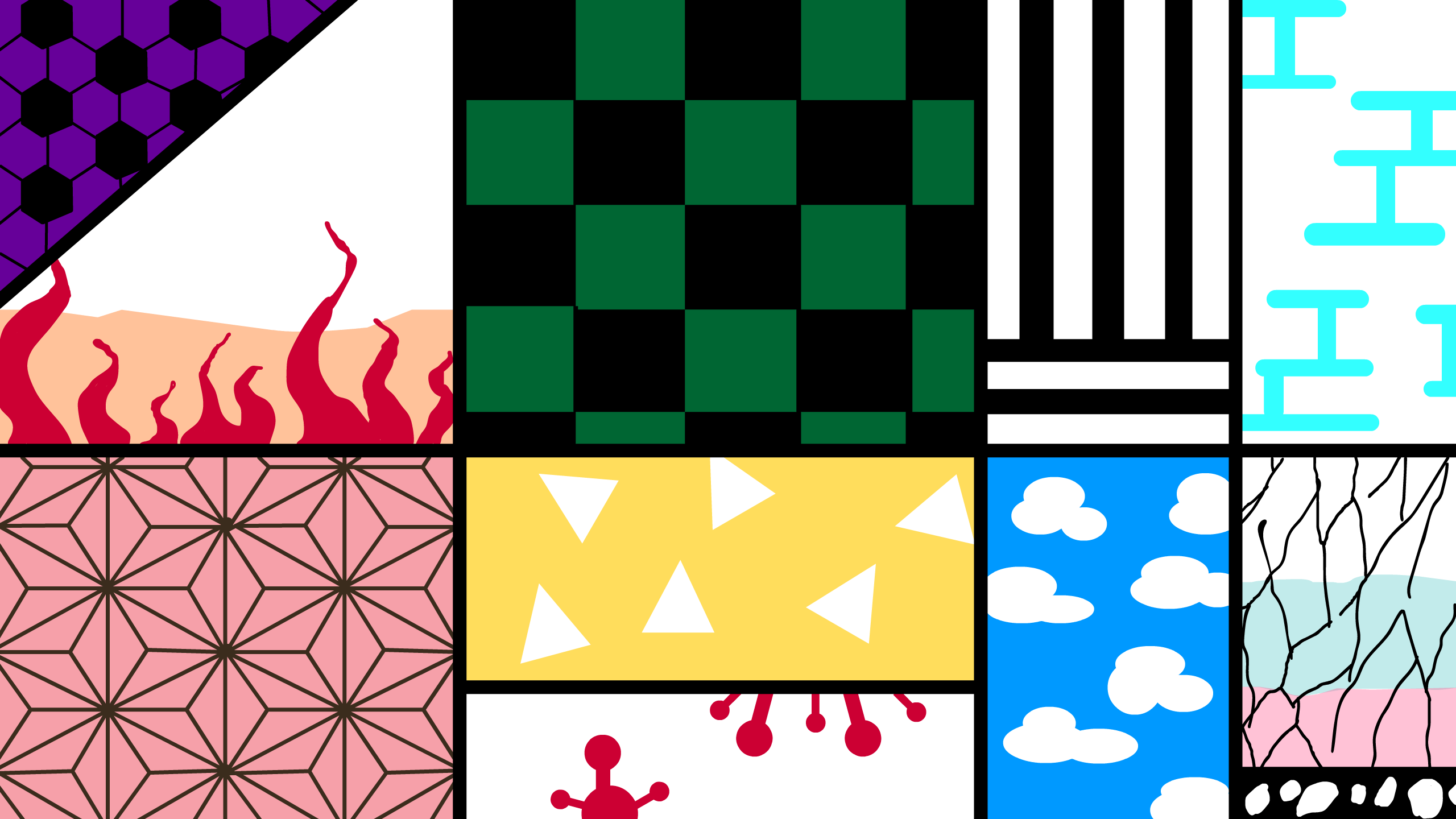 13. Separate your entire page with 6 lines, then fill in the spaces with different patterns